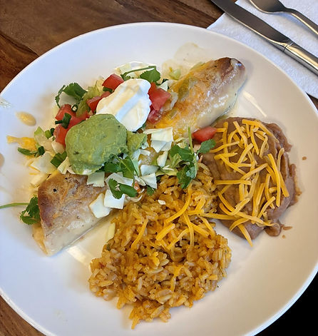 From there it's simple — mix in plenty of cheese, wrap it all up in a flour tortilla, and pour that dreamy green chile white sauce over the top. Into the oven it goes until everything is bubbly, creamy, and golden. Add a side of rice and beans and you've got a meal that feels like a full restaurant plate, made right at home.